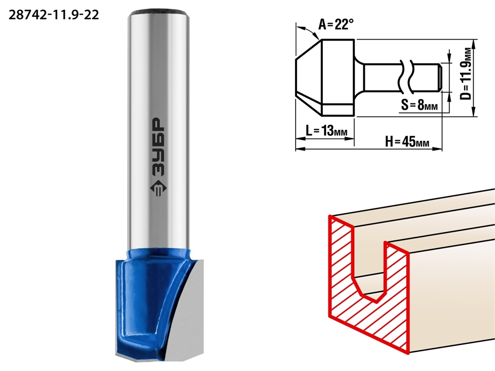 ЗУБР 11.9 x 13 мм, фреза пазовая фасонная №3, Профессионал (28742-11.9-22)