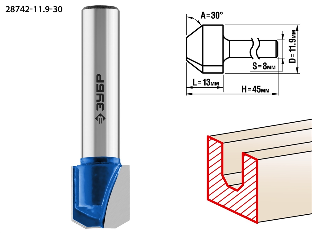 ЗУБР 11.9 x 13 мм, фреза пазовая фасонная №3, Профессионал (28742-11.9-30)