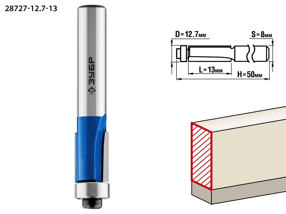 ЗУБР 12.7 x 13 мм, хвостовик 8 мм, фреза кромочная с нижним подшипником, Профессионал (28727-12.7-13)