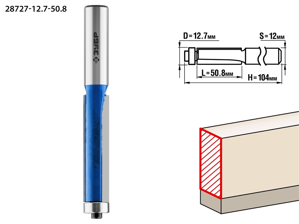 ЗУБР 12.7 x 50.8м. хвостовик 12 мм, фреза кромочная с нижним подшипником, Профессионал (28727-12.7-50.8)