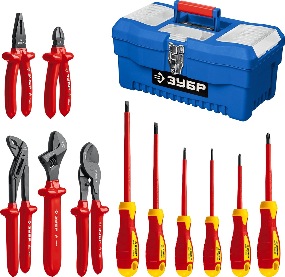ЗУБР 12 предм., набор диэлектрического губцевого инструмента, Профессионал (2214-H12)