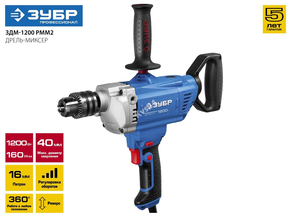 ЗУБР 1200 Вт, 16 мм, дрель-миксер, Профессионал (ЗДМ-1200 РММ2)