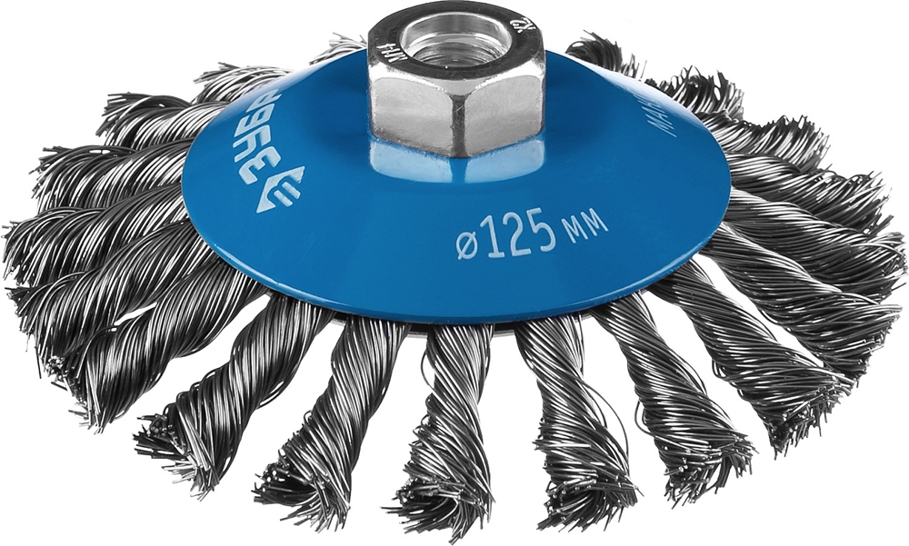 ЗУБР 125 мм, стальная проволока 0.5 мм, коническая щетка-крацовка для УШМ, Профессионал (35269-125)