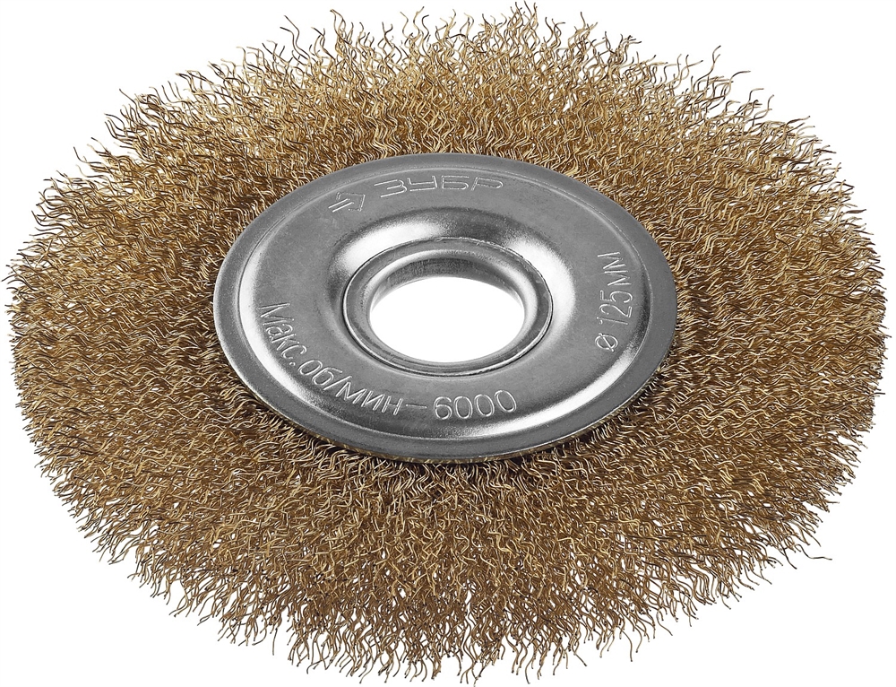 ЗУБР 125 мм, витая стальная латунированная проволока 0.3 мм, щетка дисковая для УШМ, Профессионал (35187-125)