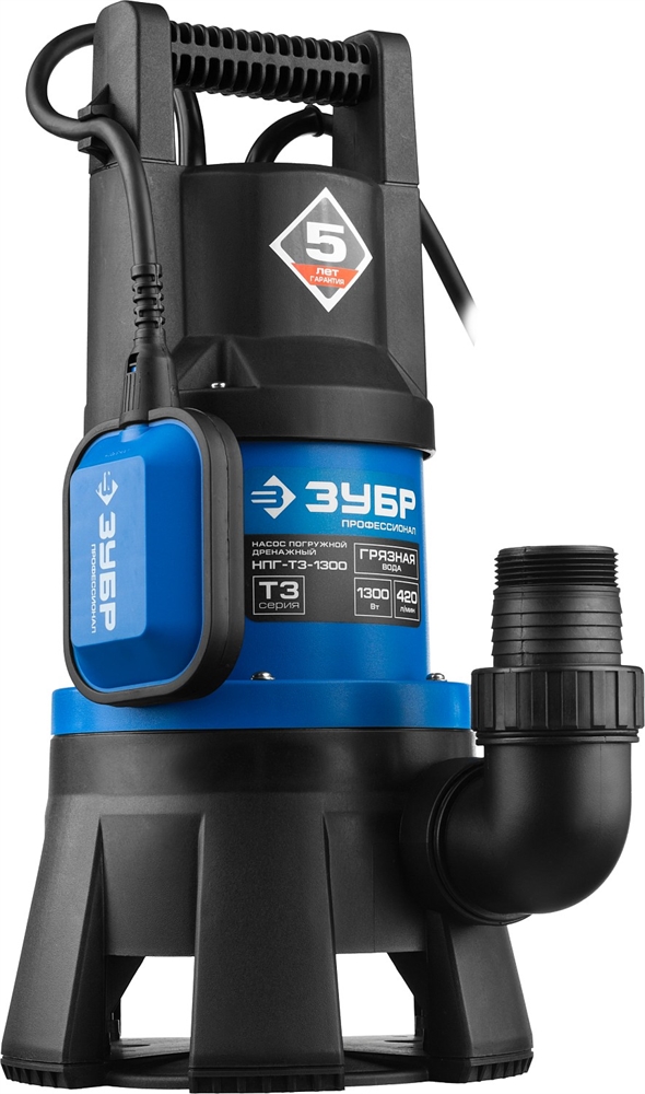 ЗУБР 1300 Вт, дренажный насос для грязной воды, Профессионал (НПГ-Т3-1300)