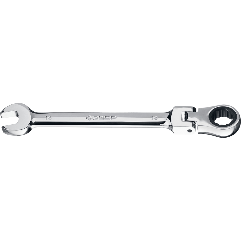 ЗУБР 14 мм, шарнирный трещоточный гаечный ключ, Профессионал (27101-14)