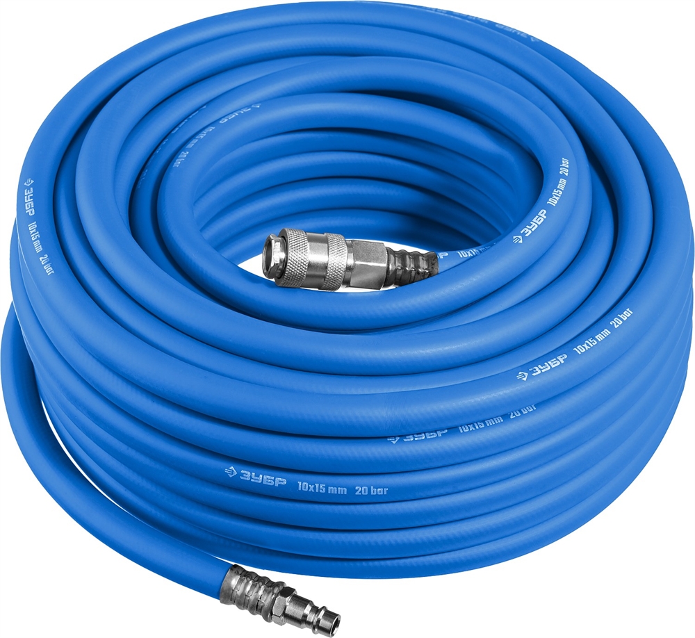 ЗУБР 15 м, 10 х 15 мм, 20 бар, воздушный шланг с фитингами рапид, Профессионал (6481-15)