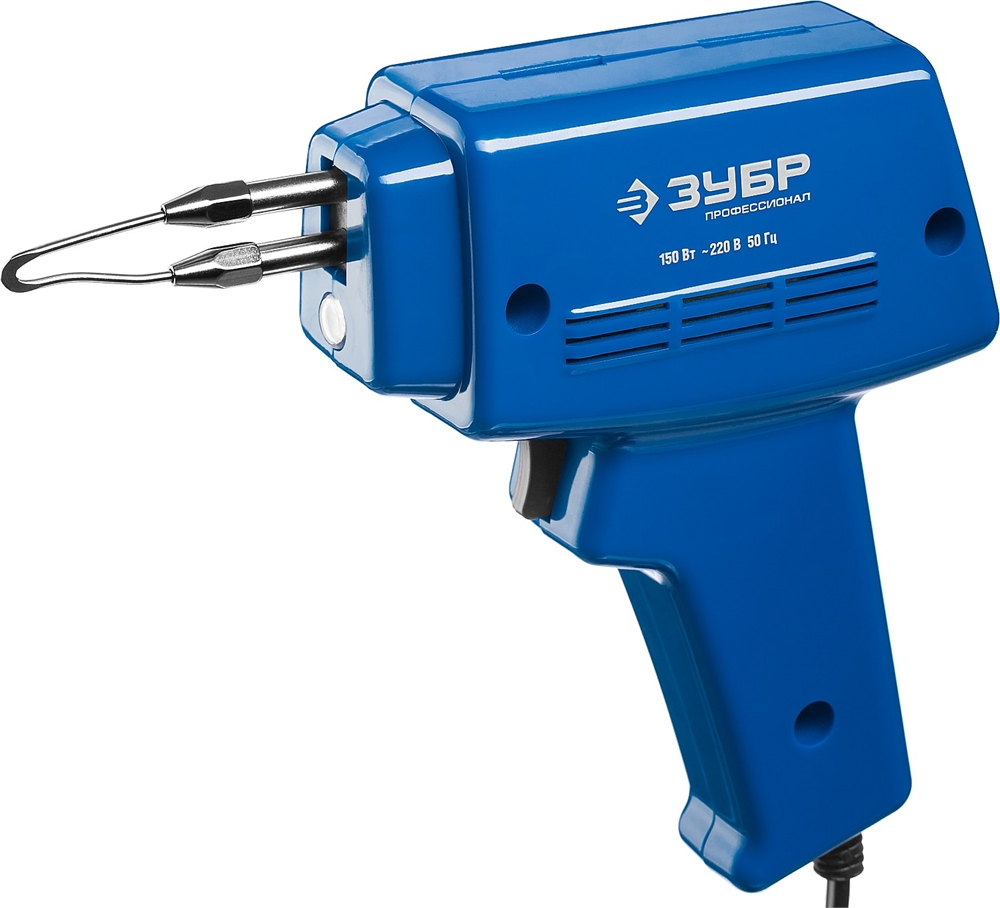 ЗУБР 150 Вт, в наборе: нагрев 6 сек., канифоль, припой, 2 сменных жала, импульсный паяльник, Профессионал (55412-H4)