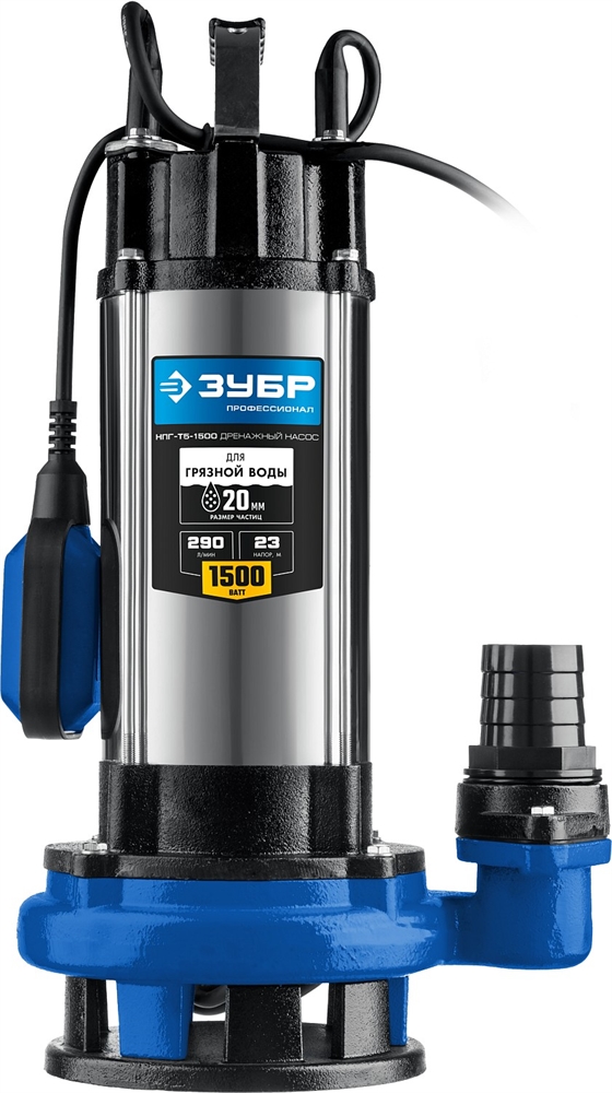 ЗУБР 1500 Вт, дренажный насос с большим напором для грязной воды, Профессионал (НПГ-Т5-1500)