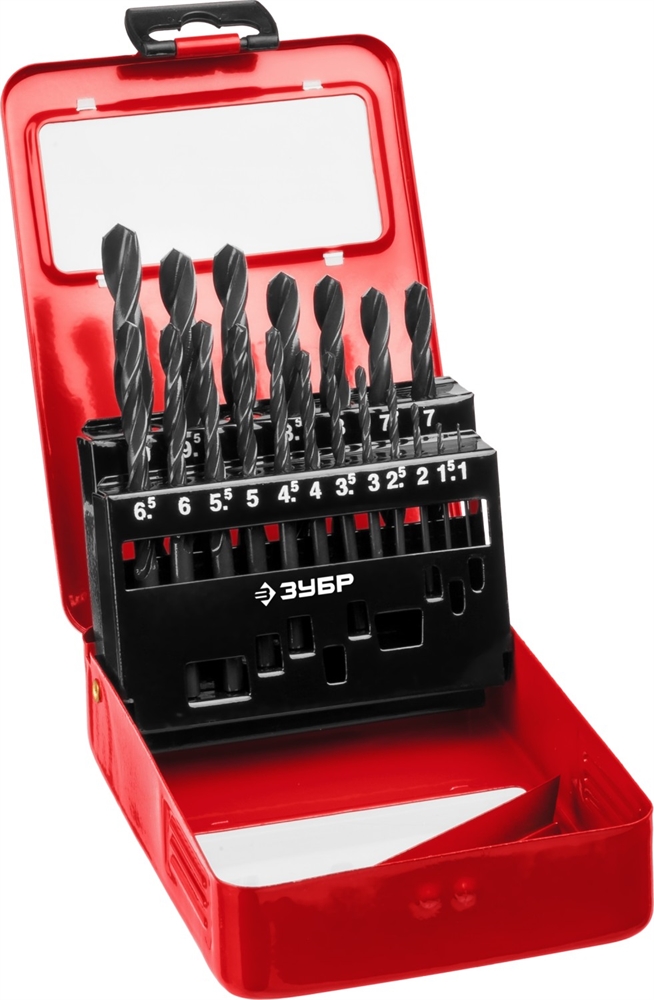 ЗУБР 19 шт, (1-10 мм), сталь Р4М2, класс В, мет.бокс, набор сверл по металлу (29605-H19) сертифицирован производителем ЗУБР, передача сертификатов осуществляется в момент отгрузки товара после обращения покупателя.