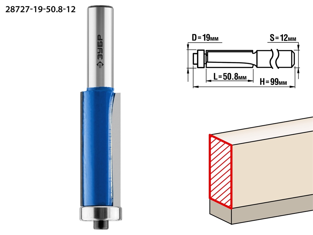 ЗУБР 19 x 50.8 мм, хвостовик 12 мм, фреза кромочная с нижним подшипником, Профессионал (28727-19-50.8-12)