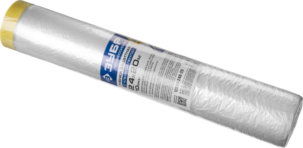 ЗУБР 20 м x 2.4 м, 10 мкм, HDPE, пленка укрывная с клейкой лентой, Профессионал (12250-240-20)