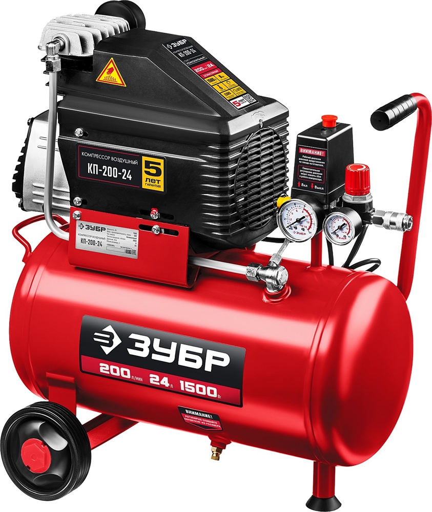 ЗУБР 200 л/мин, 24 л, 1500 Вт, безмаслянный компрессор (КП-200-24) сертифицирован производителем ЗУБР, передача сертификатов осуществляется в момент отгрузки товара после обращения покупателя.