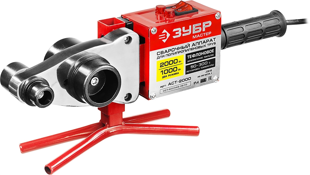 ЗУБР 2000 / 1000 Вт, паяльник для полипропиленовых труб, 6 насадок в комплекте (АСТ-2000)