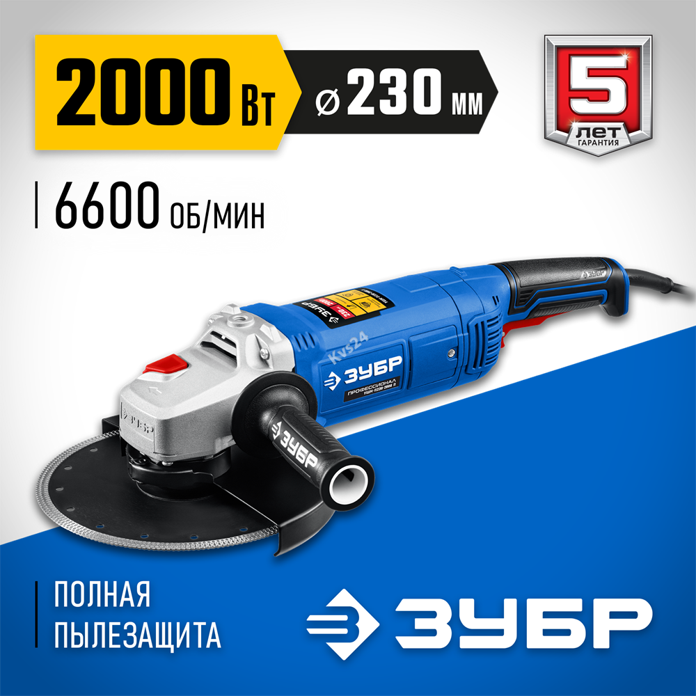 ЗУБР 2000 Вт, d230 мм, УШМ, Профессионал (УШМ-П230-2000 П)