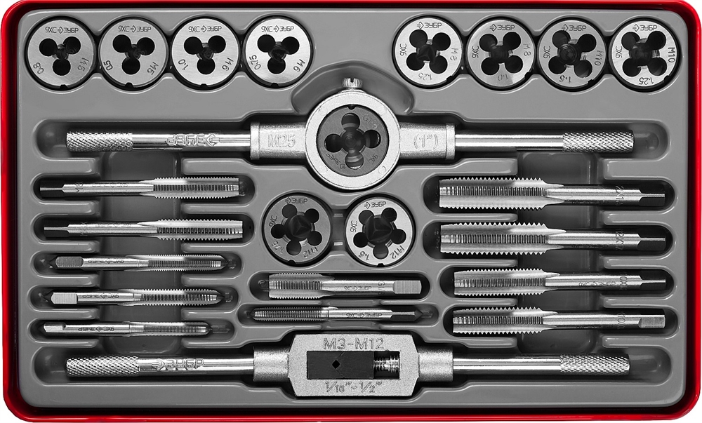 ЗУБР 24 предм., сталь 9ХС, набор метчиков и плашек (28116-H24)