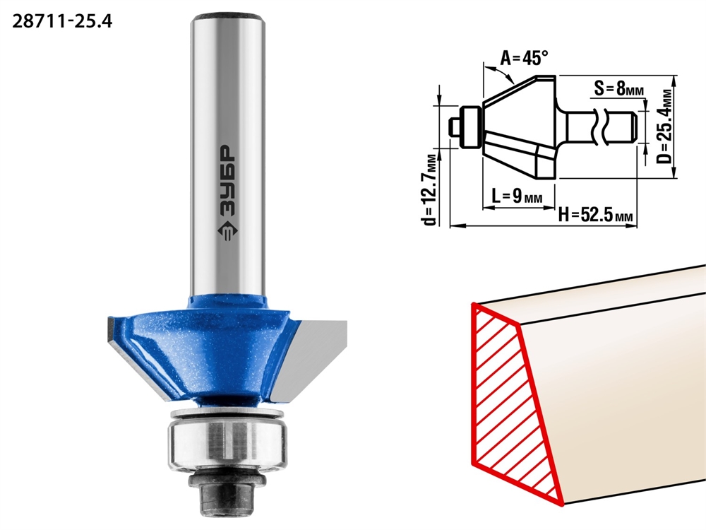 ЗУБР 25.4 x 8 мм, фреза кромочная калевочная (фасочная) №9, Профессионал (28711-25.4)