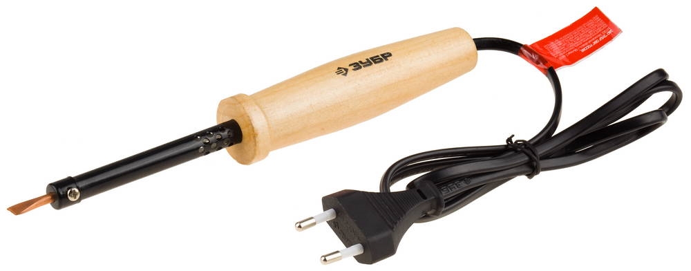 ЗУБР 25 Вт, клин, электропаяльник с деревянной рукояткой (55405-25)