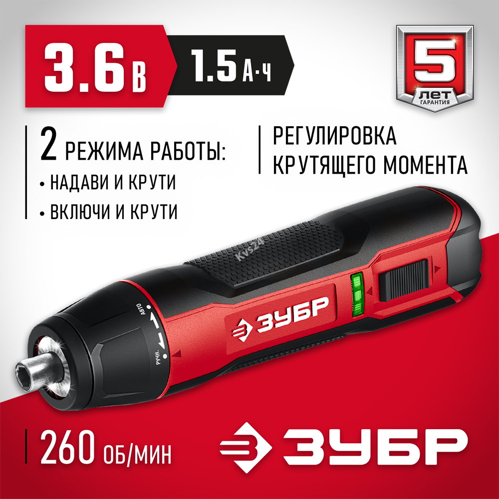 ЗУБР 3.6 В, аккумуляторная отвертка (ЗО-4)