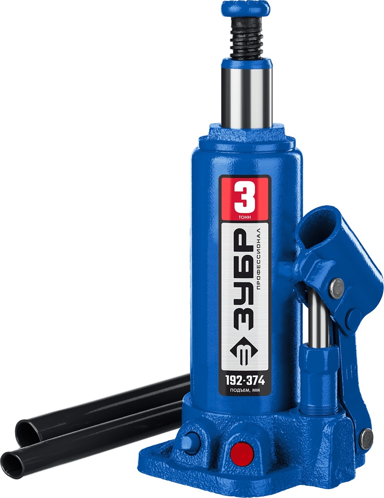 ЗУБР 3 т, 192 - 374 мм, бутылочный гидравлический домкрат, Профессионал (43060-3)