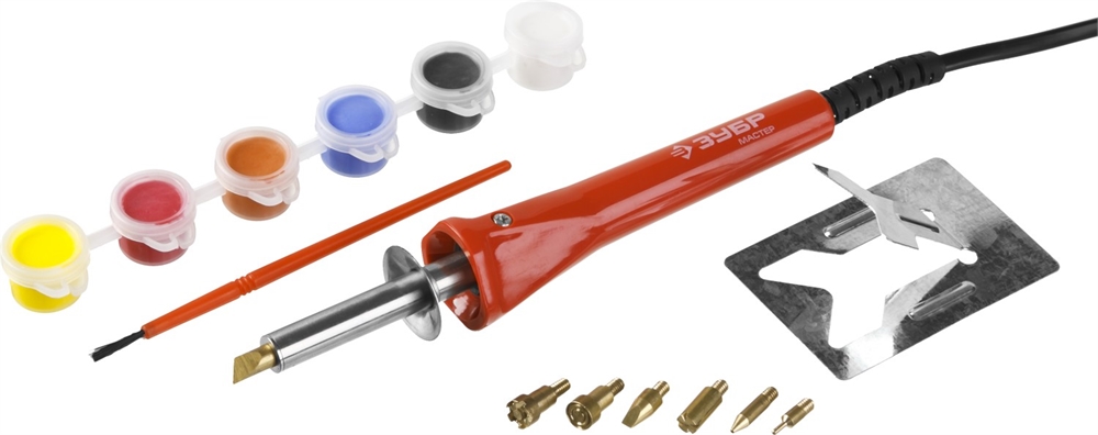 ЗУБР 30 Вт, прибор для выжигания с набором насадок и красками (55425)