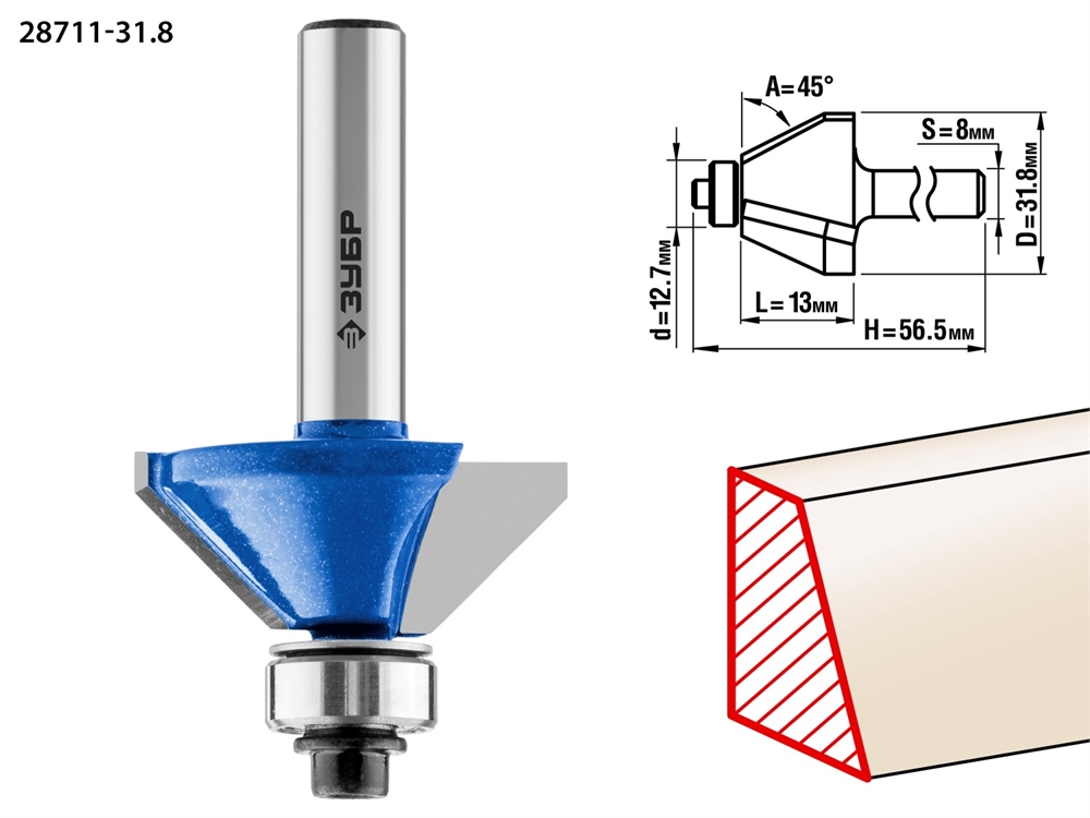 ЗУБР 31.8 x 13 мм, фреза кромочная калевочная (фасочная) №9, Профессионал (28711-31.8)