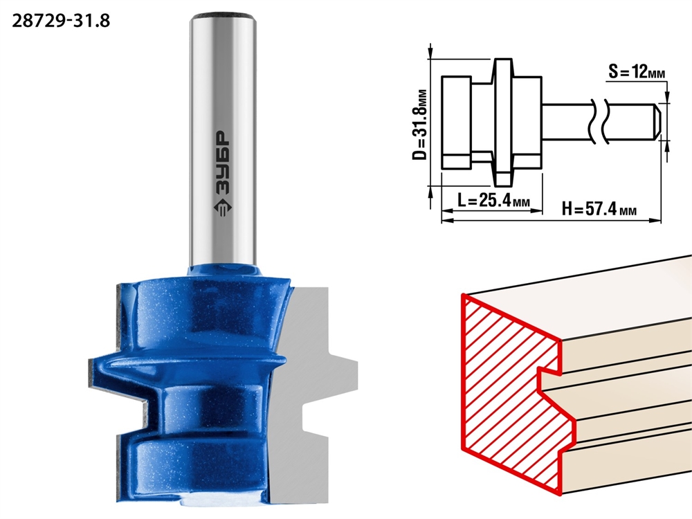 ЗУБР 31.8 x 26 мм, хвостовик 12 мм, фреза комбинированная универсальная, Профессионал (28729-31.8)