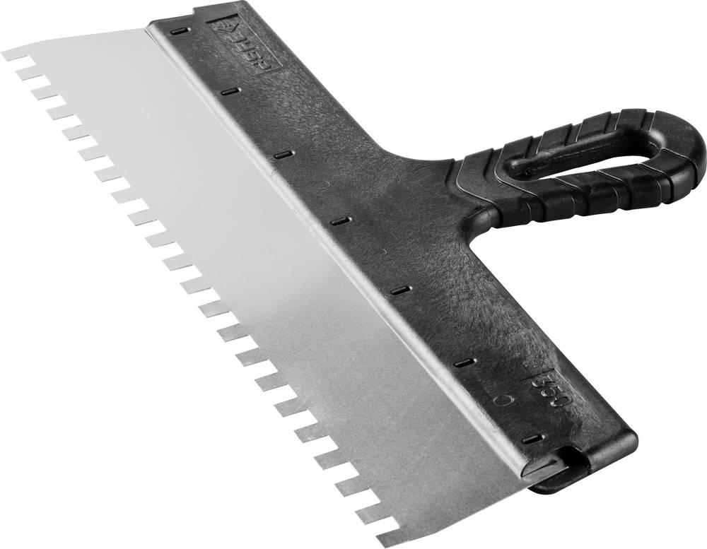 ЗУБР 350 мм, зуб 8 х 8 мм, зубчатый пластиковая ручка, нержавеющий, фасадный шпатель (10078-35-08)