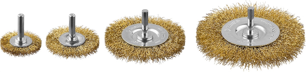 ЗУБР 38/50/75/100 мм, витая латунированная, стальная проволока, набор дисковых щеток крацовок для дрели , Профессионал (3521-H4_z03)