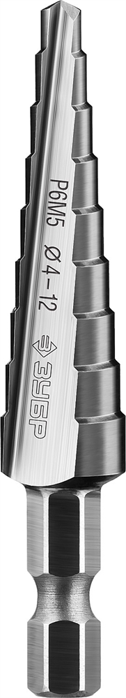 ЗУБР 4-12 мм, 9 ступеней, сталь Р6М5, ступенчатое сверло, Профессионал (29670-4-12-9)