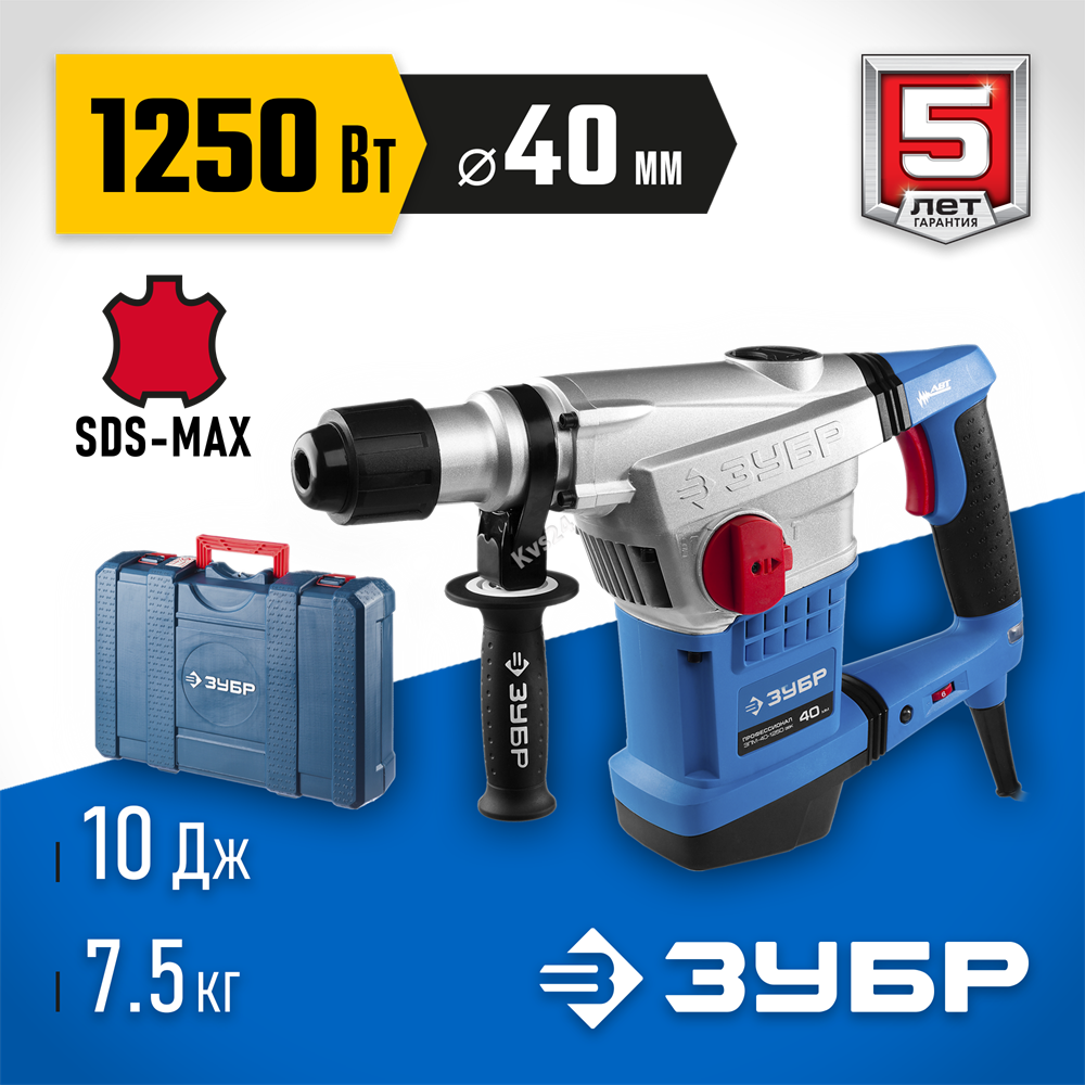 ЗУБР 40 мм, 1250 Вт, АВТ, перфоратор SDS-Max, Профессионал (ЗПМ-40-1250 ЭВК) сертифицирован производителем ЗУБР, передача сертификатов осуществляется в момент отгрузки товара после обращения покупателя.