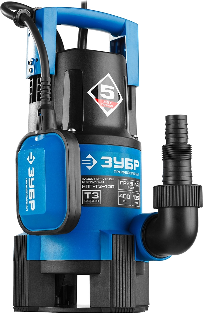 ЗУБР 400 Вт, дренажный насос для грязной воды, Профессионал (НПГ-Т3-400)