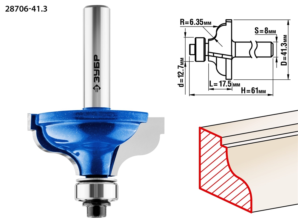 ЗУБР 41.3 x 18 мм, радиус 6.3 мм, фреза кромочная калевочная №5, Профессионал (28706-41.3)