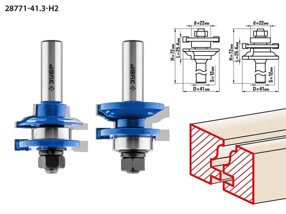 ЗУБР 41.3 x 23 мм, хвостовик 12 мм, набор фрез рамочных №1, Профессионал (28771-41.3-H2)