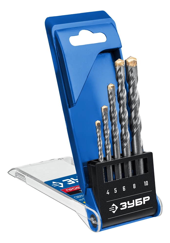 ЗУБР 5 шт: d 4-5-6-8-10 мм, трехгранный хвостовик, набор сверл по бетону усиленных, Профессионал (2916-H5) сертифицирован производителем ЗУБР, передача сертификатов осуществляется в момент отгрузки товара после обращения покупателя.