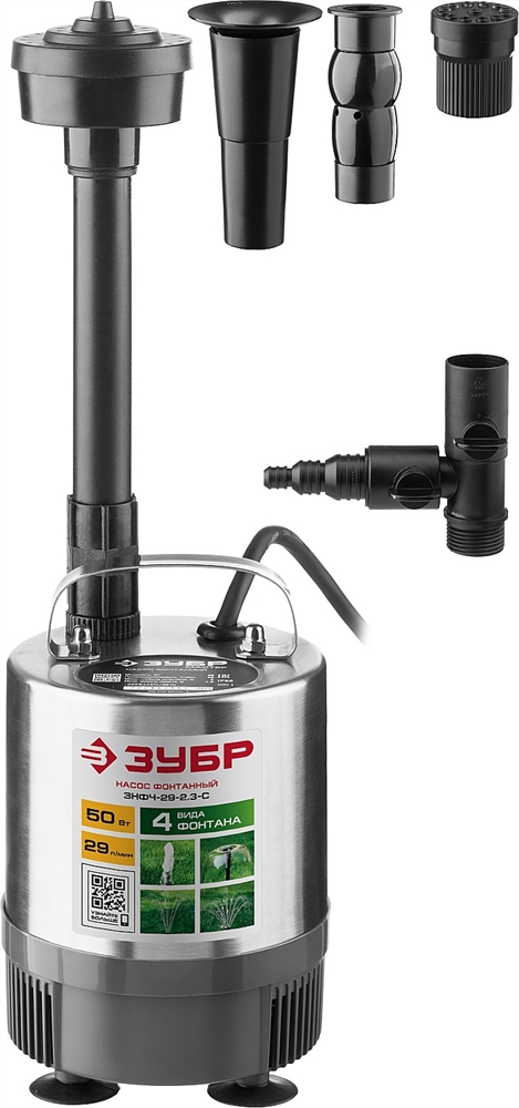 ЗУБР 50 Вт, фонтанный насос, корпус из нержавеющей стали (ЗНФЧ-29-2.3-С)