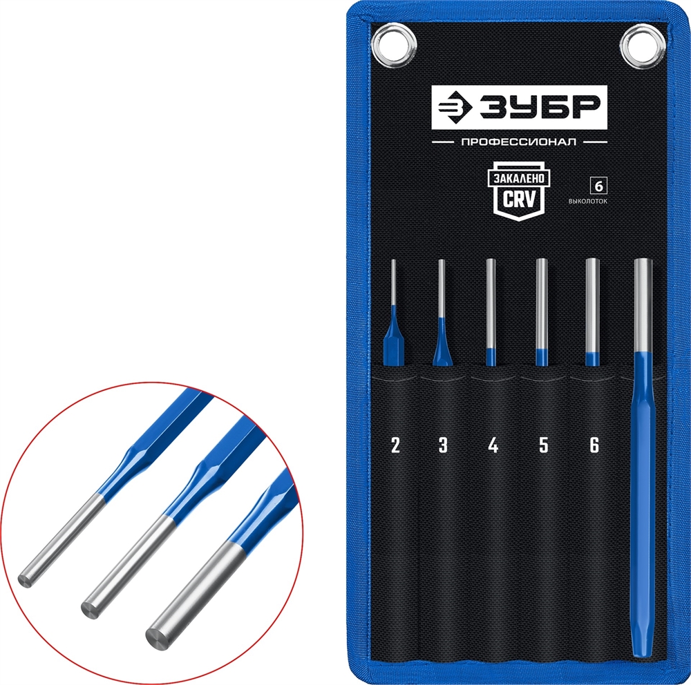 ЗУБР 6 предметов, набор шестигранных выколоток в чехле, Профессионал (21070-H6)