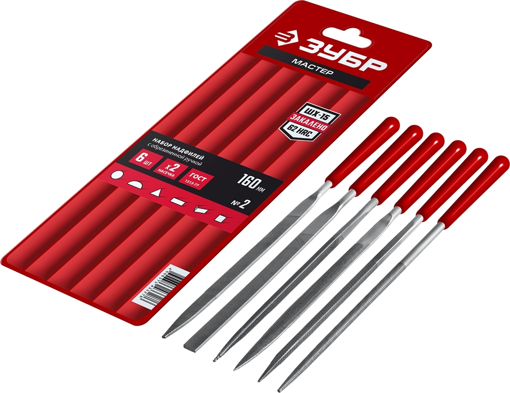 ЗУБР 6 шт, 160 мм, в чехле, с ручками набор надфилей (16016-H6) сертифицирован производителем ЗУБР, передача сертификатов осуществляется в момент отгрузки товара после обращения покупателя.