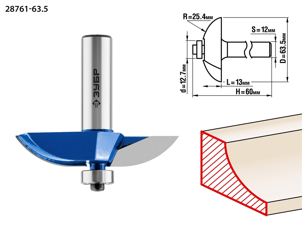 ЗУБР 63.5 x 13 мм, радиус 25.4 мм, фреза фигирейная №2, Профессионал (28761-63.5)