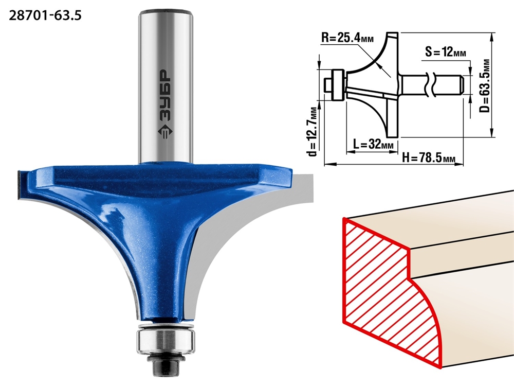 ЗУБР 63.5 x 32 мм, радиус 25 мм, фреза кромочная калевочная №1, Профессионал (28701-63.5)
