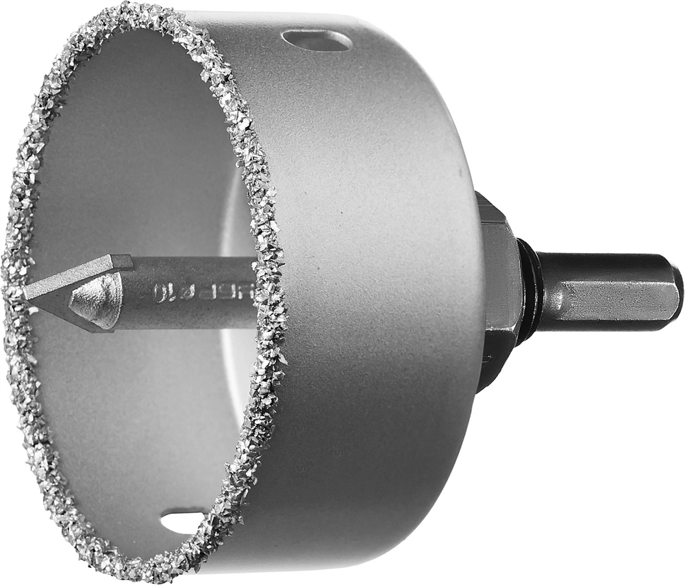 Применяется для получения ровных отверстий в облицовочных материалах, а также в ячеистом бетоне, кирпиче и гипсокартоне. Используется на дрелях и легких перфораторах в режимме безударного сверления.