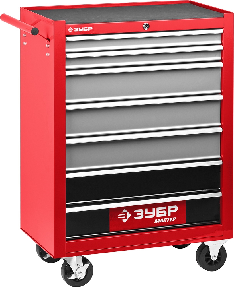 Профессиональная тележка ЗУБР позволит Вам комфортно организовать рабочее место с легким доступом ко всем инструментам. При необходимости Вы можете транспортировать его, а так же использовать ключи для безопасности