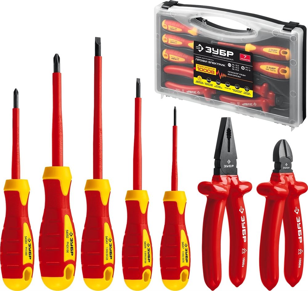ЗУБР 7 предм., набор диэлектрического губцевого инструмента, Профессионал (2214-H7) сертифицирован производителем ЗУБР, передача сертификатов осуществляется в момент отгрузки товара после обращения покупателя.