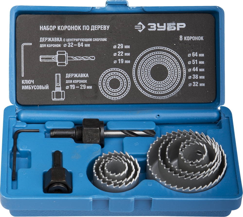 ЗУБР 8 шт, 19-64 мм, набор коронок по дереву (2955-H11)