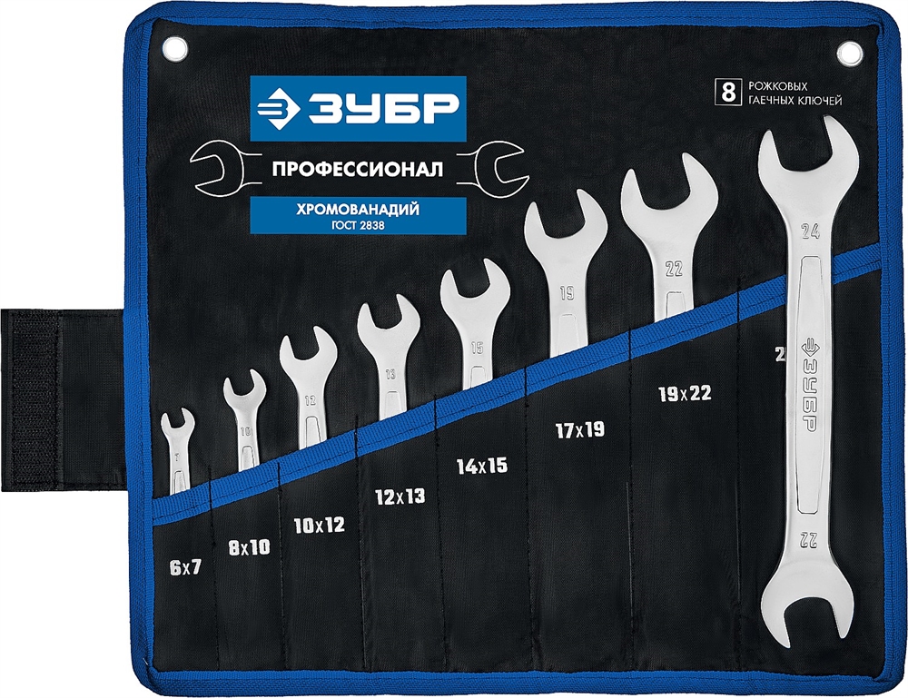 ЗУБР 8 шт, 6 - 24 мм, набор рожковых гаечных ключей, Профессионал (27010-H8)