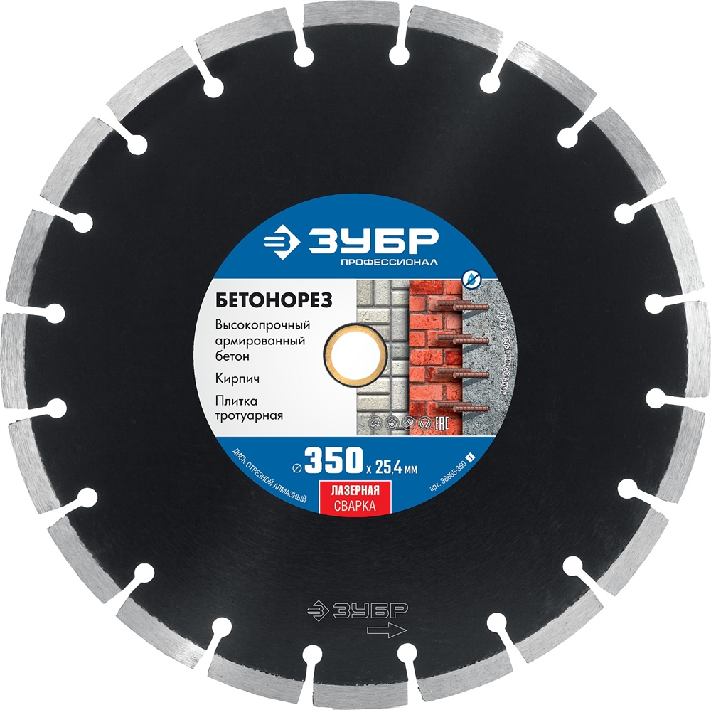 ЗУБР Бетонорез, 350 мм, (25.4/20 мм, 10 х 3.2 мм), сегментный алмазный диск, Профессионал (36665-350) сертифицирован производителем ЗУБР, передача сертификатов осуществляется в момент отгрузки товара после обращения покупателя.
