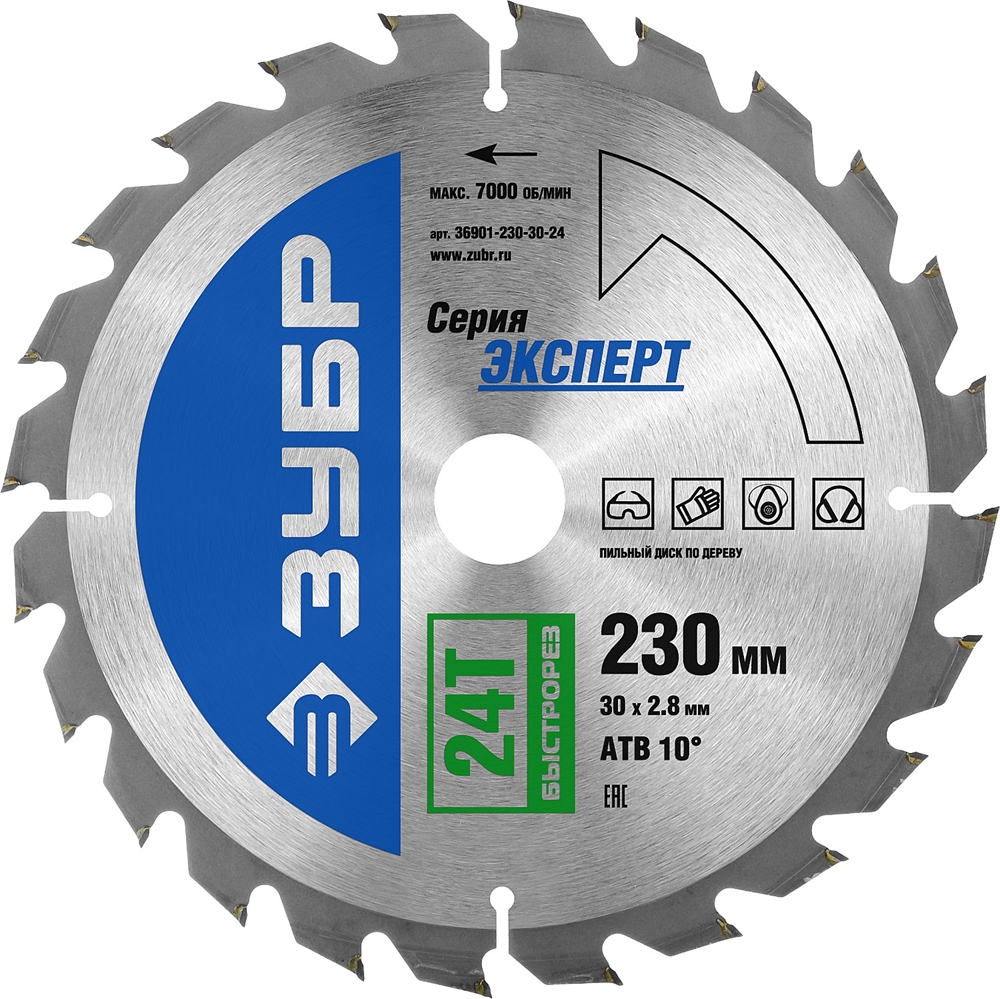 ЗУБР Быстрорез, 230 x 30 мм, 24Т, пильный диск по дереву, Профессионал (36901-230-30-24)