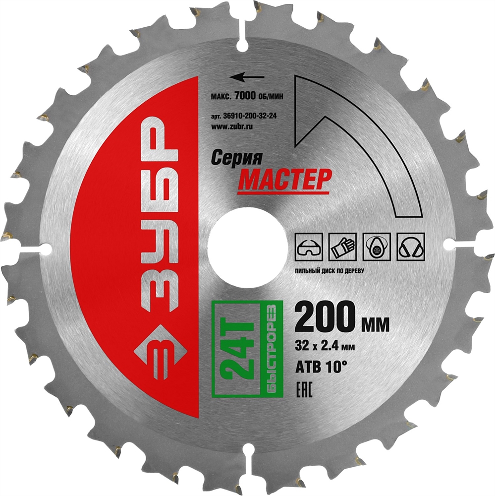 ЗУБР Быстрый рез, 200 x 32 мм, 24Т, пильный диск по дереву (36910-200-32-24)