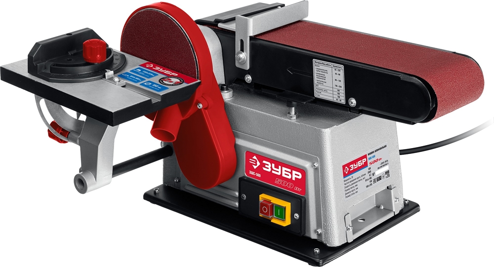 ЗУБР d 150 мм, 100 х 914 мм лента, 500 Вт, тарельчато - ленточный шлифовальный станок (ЗШС-500)