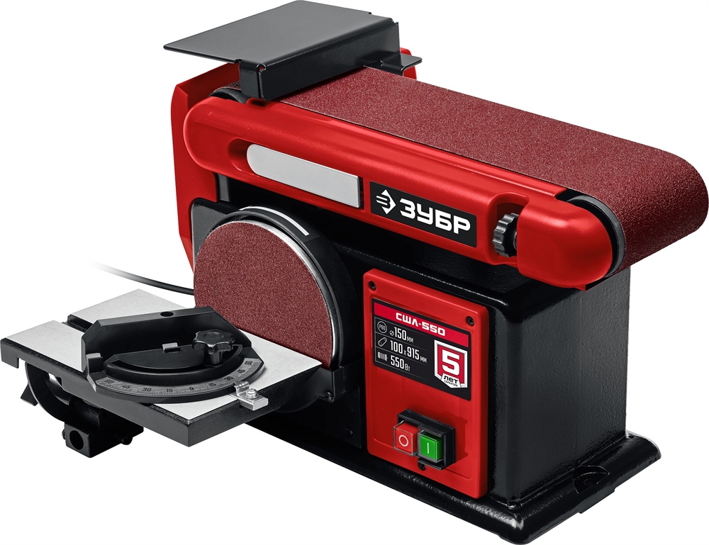 ЗУБР d 150 мм, 100 х 914 мм лента, 550 Вт, тарельчато - ленточный шлифовальный станок (СШЛ-550)